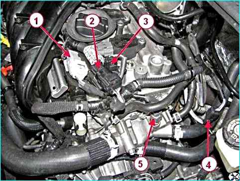 Дополнительно отсоединить разъемы жгута проводов двигателя: