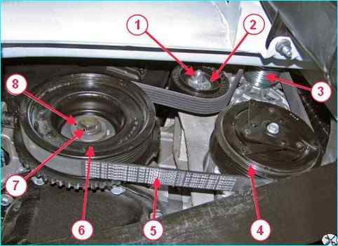 Снимаем ремень привода вспомогательных агрегатов, как описано выше.