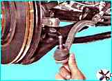 Наружный наконечник рулевой тяги заменяем при обнаружении люфта шарового шарнира тяги или повреждении чехла шарнира