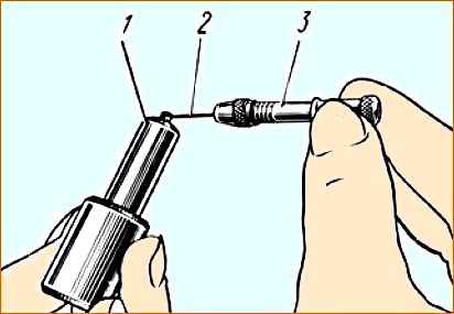 Распыливающие отверстия прочистить стальной проволокой диаметром 0,3 мм (для распылителя форсунок моделей 267-02, 267-10, 204-50, 204-50.01 и 261-10(11)) и диаметром 0,28 мм (для распылителя форсунки модели 51-01).