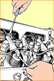 При регулировке тепловых зазоров и повторной их проверке коромысла клапанов рекомендуется прижать: