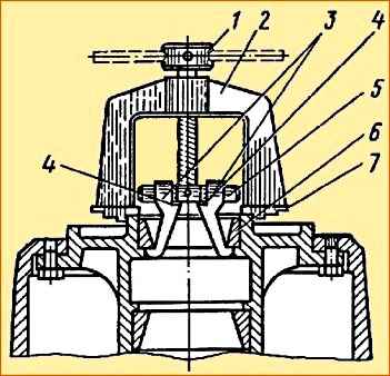 - - гайку 9 застопорите болтом 10 с пружинной шайбой, завернув его моментом 5—7 кгс-м.