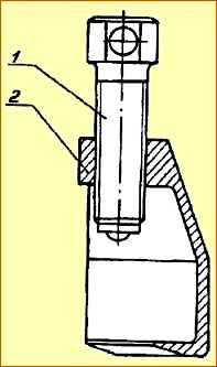 Втулки шкворня заменяйте в случае, когда зазор в сопряжении шкворень — втулка превышает 0,1 мм. После запрессовки новых втулок разверните их до диаметра 50+0,082 мм (рис. 1, 5).