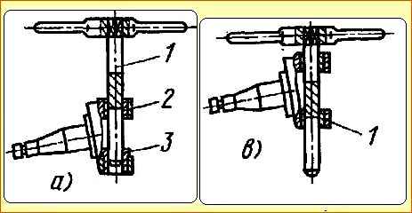 - - разверните вторую втулку шкворня (вновь запрессованную), при этом режущую часть развертки пропустите через ранее развернутую (первую) втулку шкворня, которая служит направляющей для второй втулки (рис. 9, Ь).
