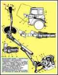 - - снимите оттяжную пружину педали тормоза и отсоедините тягу педали тормоза от рычага;