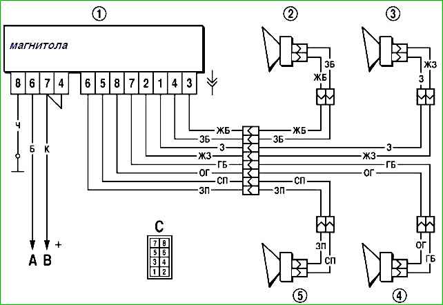 Схема подключения аудиоаппаратуры