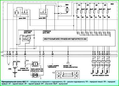 - 25 А – Электромагнитные клапаны гидроагрегата АБС
