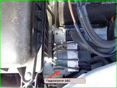 Блок предохранителей АБС находится в моторном отсеке на кронштейне рядом с аккумулятором