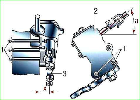 - – перед тем как затянуть гайки болтов 1, сориентируйте рулевой механизм так, чтобы угол а был 32°;
