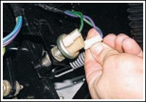 Выключатель стоп-сигналов установлен под панелью приборов на кронштейне крепления педалей