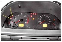 В комбинации приборов автомобиля установлена сигнальная лампа 4 аварийного падения давления масла в двигателе