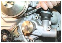 Водяной насос снимают для доступа к другим деталям, а также для его ремонта или замены при возникновении во время работы шума, уровень которого превышает обычный и который появляется при образовании большого радиального люфта вала насоса