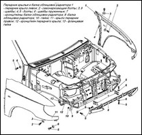 Установите автомобиль на смотровую канаву или, затормозив автомобиль стояночным тормозом и установив упоры под задние колеса автомобиля, поднимите и установите переднюю часть автомобиля на опоры.