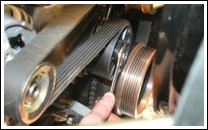 Снимите ремень привода насоса гидроусилителя рулевого управления.