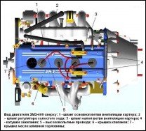 Редукционный клапан установлен на переходнике, ввернутом в масляную магистраль блока цилиндров с его правой стороны