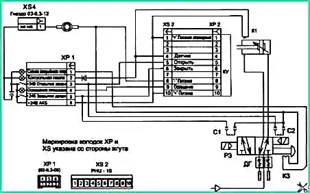 Подключение пневмопривода к электрическим цепям управления автобуса производится электрическими разъёмами, согласно схемы рис. 5