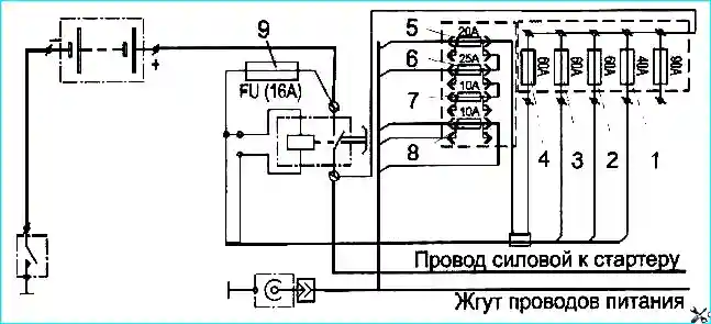 - 1FU4(8А) - Питание контрольных ламп, выключателя фонарей заднего хода