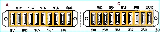 - 1FU1(8А) - Выключатель управления приводом пассажирских дверей. Питание системы сигнализации указателями поворотов и сигнализации дверей.