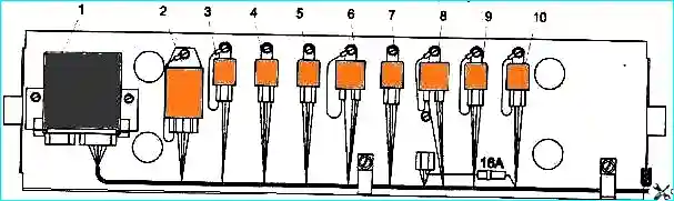 Блок реле электрооборудования расположен на панели под кожухом над дверью водителя (рис. 1).