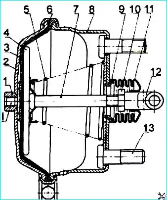 Устройство тормозной камеры показано на рис. 9 и рис. 8.