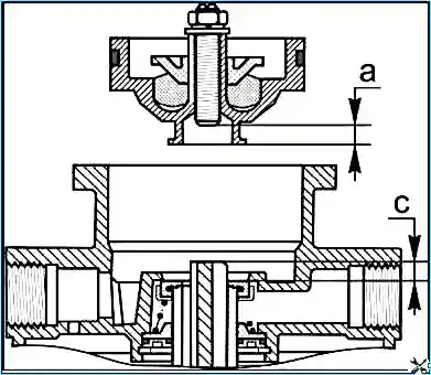 - Перед установкой верхнего поршня замерить расстояние "с" (рис. 9) выступания хвостовика поршня над клапаном.