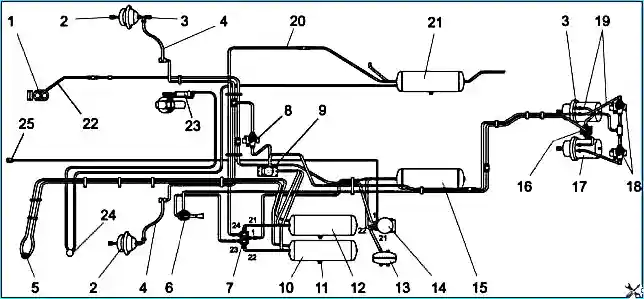 Схема пневматического привода тормозной системы показана на рисунке 1.