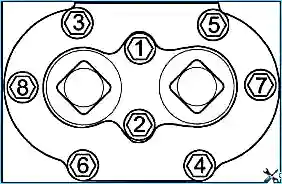 Протяжку гаек головки цилиндров следует выполнять равномерно в порядке, указанном на рис. 3.