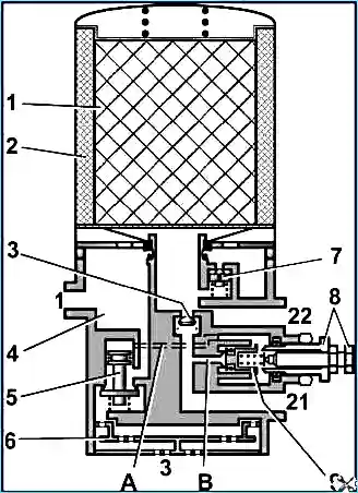 - Отвернуть, вращая против часовой стрелки, патрон фильтрующего элемента.