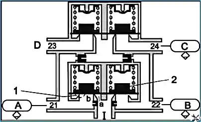 Давление в выводах 21 и 22 должно изменяться от 0 до давления в выводах 11 и 12 и обратно.