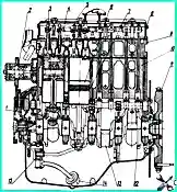 Система питания дизеля топливом (рис. 1) состоит из топливного насоса высокого давления 4, форсунок 13, трубопроводов низкого 6 и высокого 9 давления, впускного 12 и выпускного коллекторов, топливных фильтров грубой 3 и тонкой 10 очистки, топливного бака 1, трубопроводов и шлангов