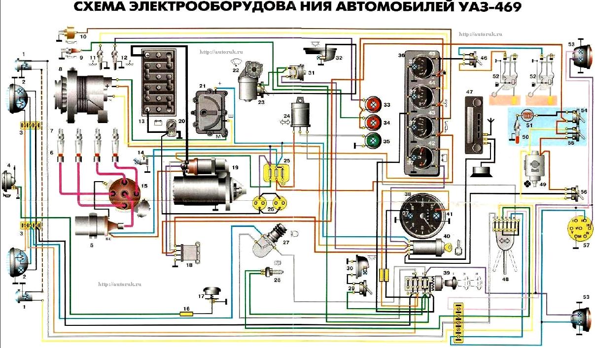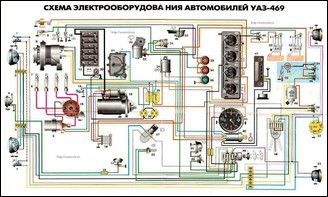 Схема жгутов проводов автомобиля УАЗ-469