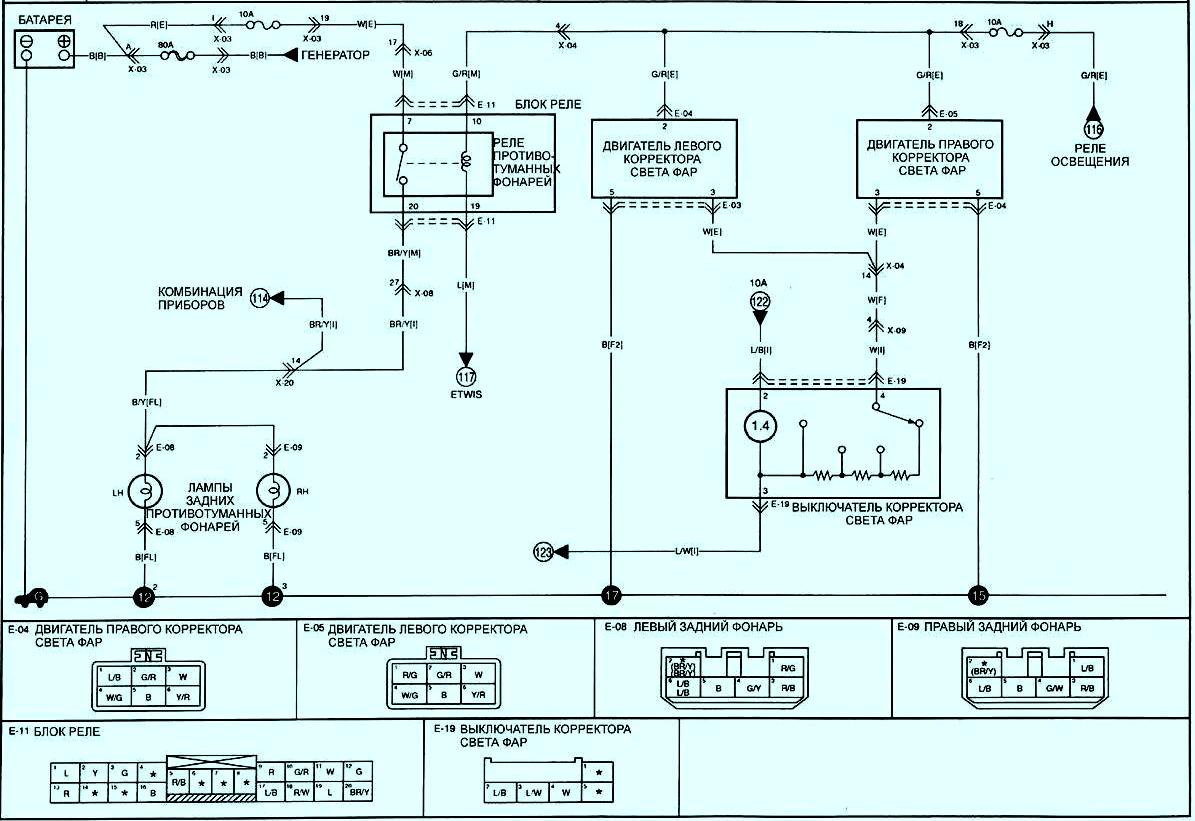 Задние противотуманные фонари, корректор света фар (HLLD)
