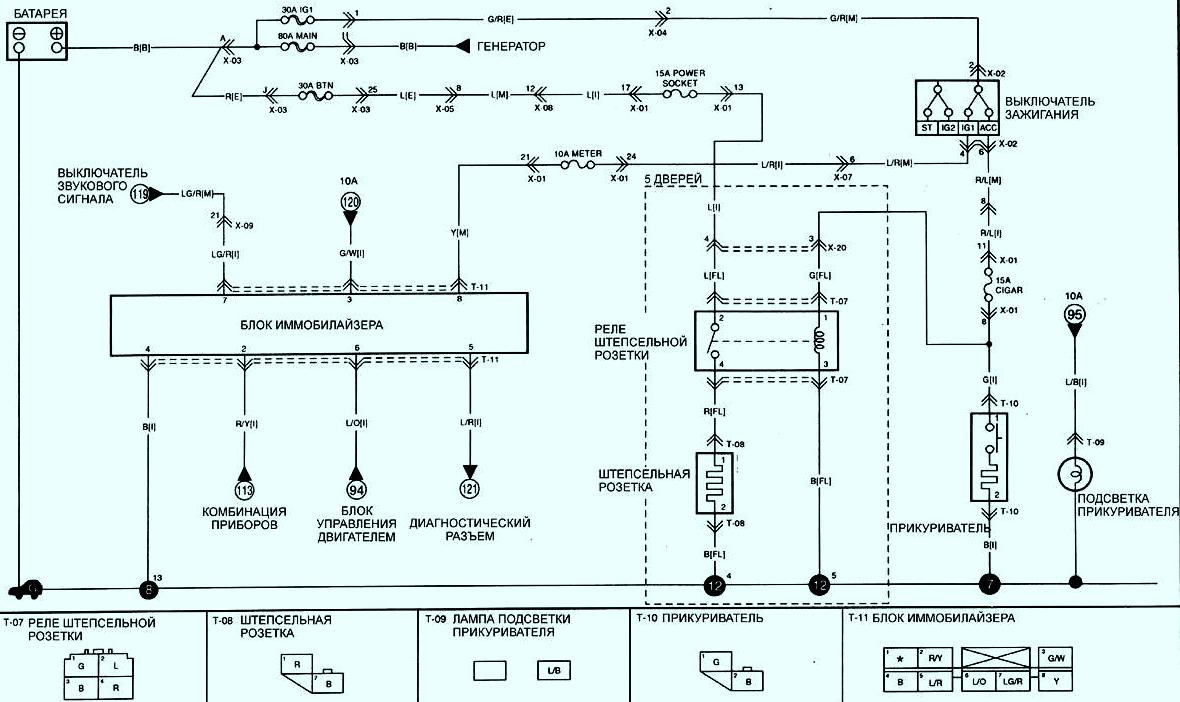 Штепсельная розетка, прикуриватель и иммобилайзер