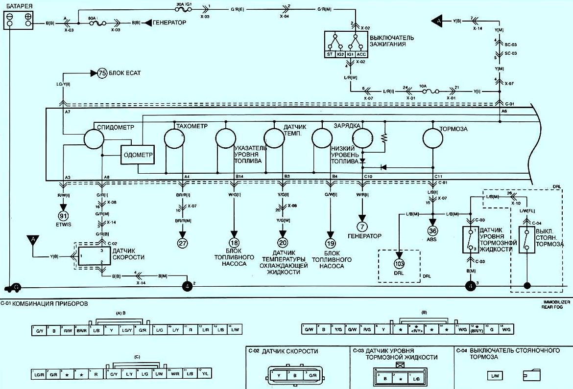 Комбинация приборов и контрольные лампы