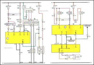 Схема 2г. Система управления двигателем (продолжение): 1,2,5 - предохранители (15 А); 3 - предохранитель (10 А); 4,12 - соединительные колодки; 6 - электромагнитный клапан рециркуляции отработавших газов; 7 - двухходовой клапан; 8 - соединительная колодка; 9 - гравитационный клапан; 10 - комбинация приборов; 11 - электронный блок управления двигателем; 13 - датчик скорости автомобиля (для автомобилей, оснащенных механической коробкой передач)