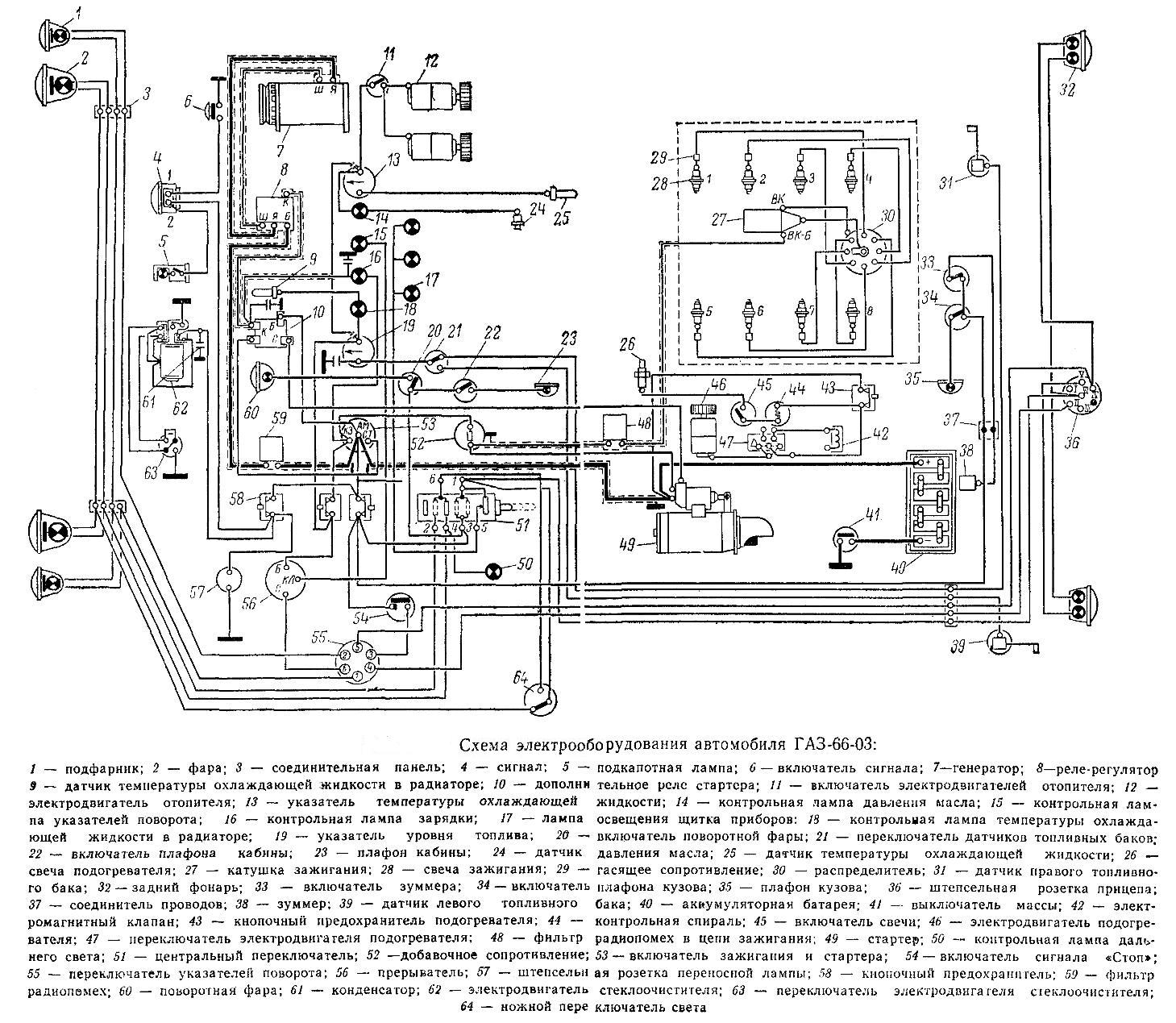Электрооборудование автомобиля выполнено по однопроводной схеме. Вторым проводом являются металлические части автомобиля (масса).