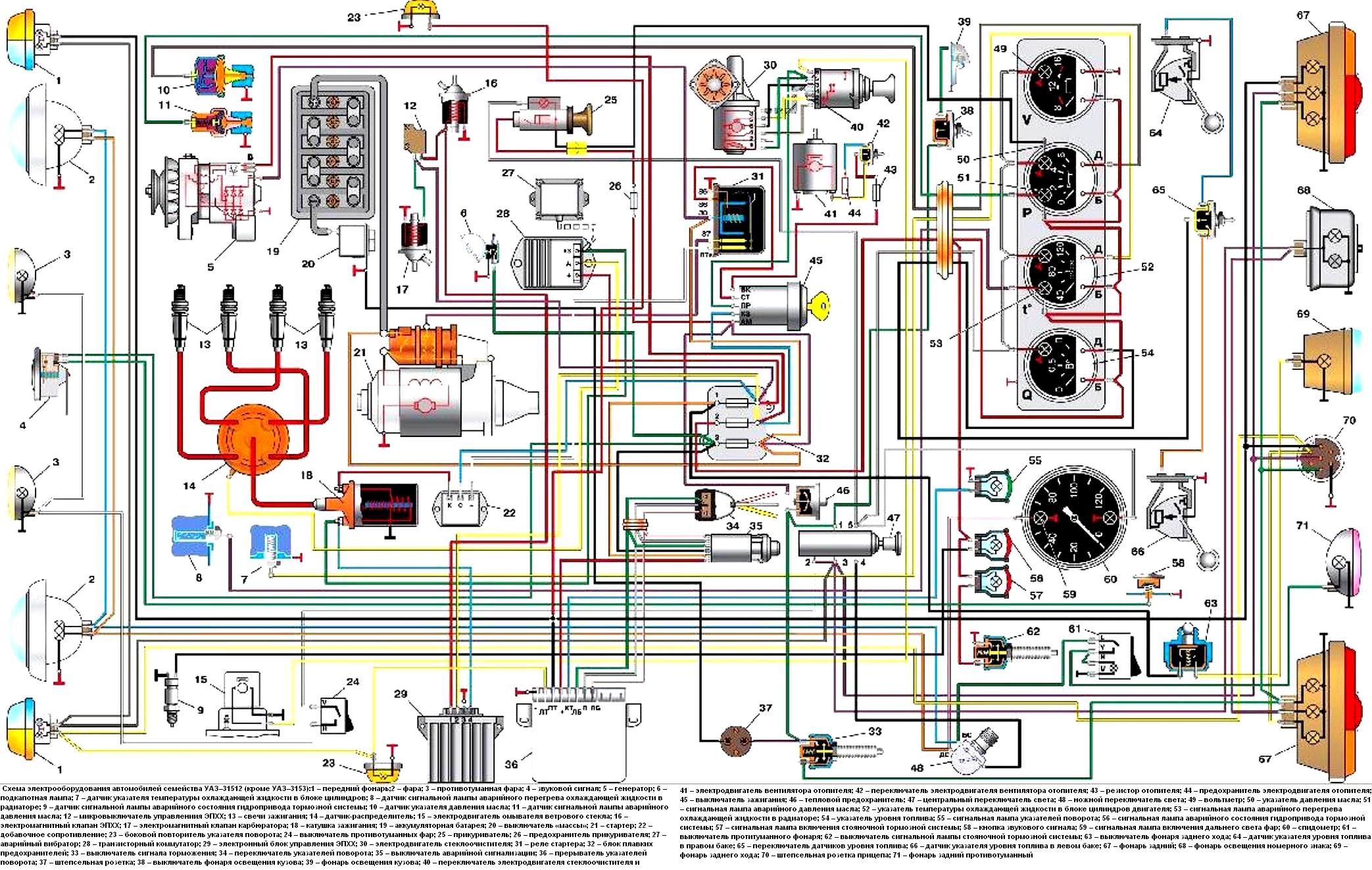 Схема электрооборудования УАЗ–31512 (кроме УАЗ–3153)