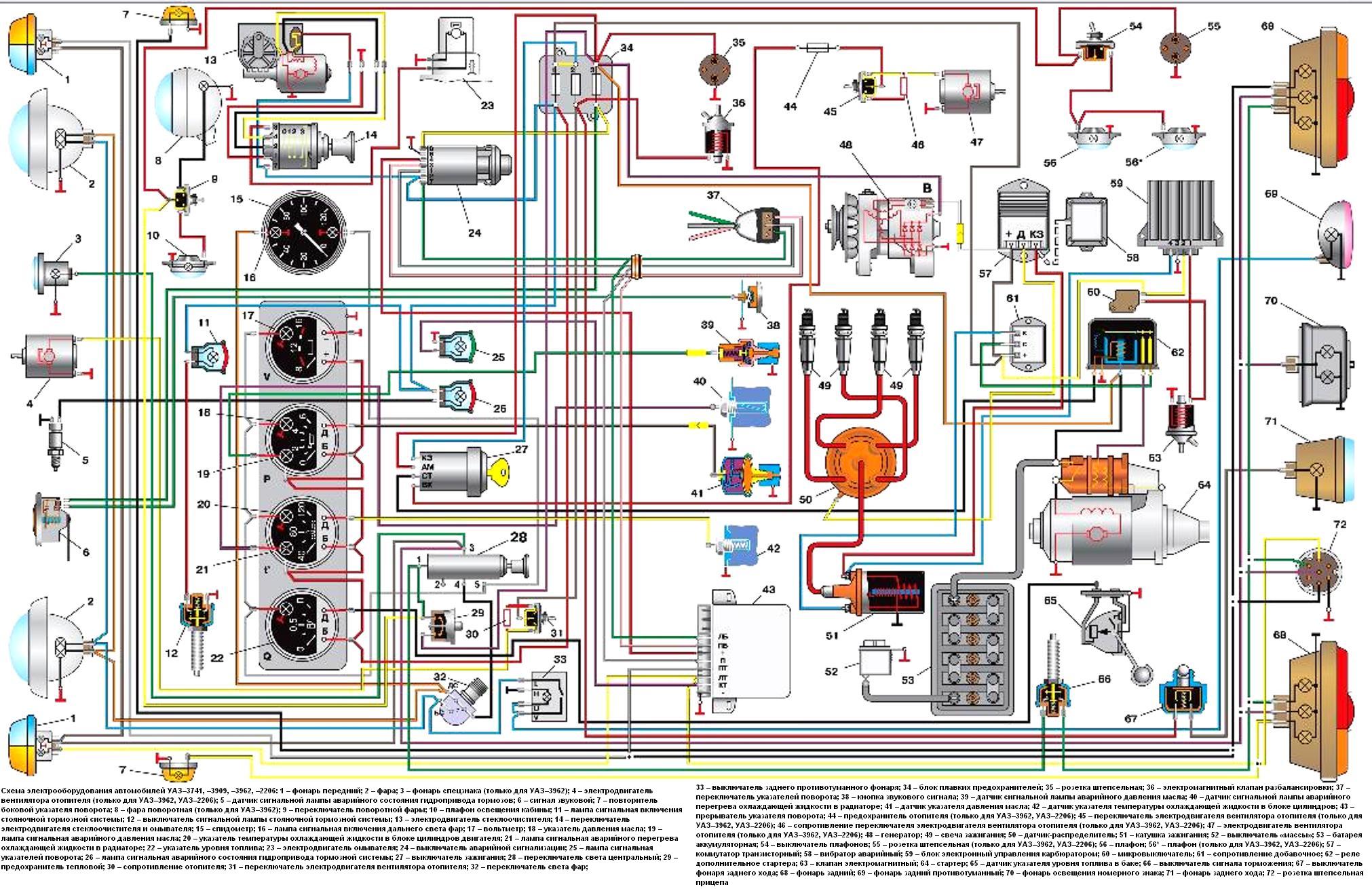 Схема электрооборудования автомобилей УАЗ–3741, –3909, –3962, –2206