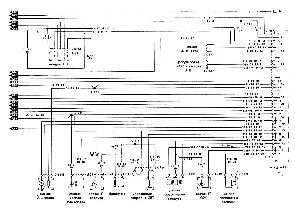 Электрическая схема автомобиля Форд Фиеста (продолжение схемы 1)