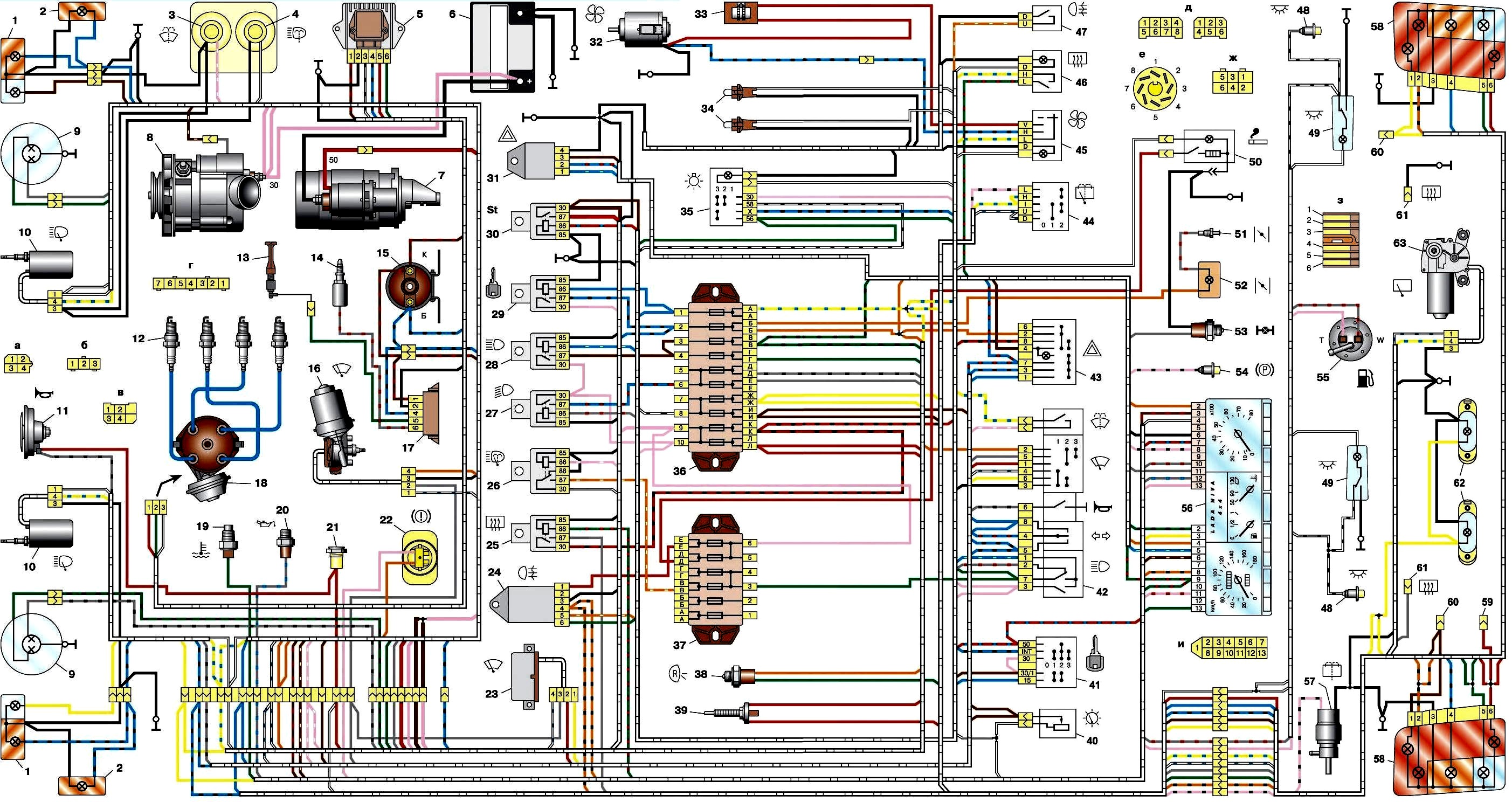 Схема соединения электроприборов автомобиля ВАЗ-21213
