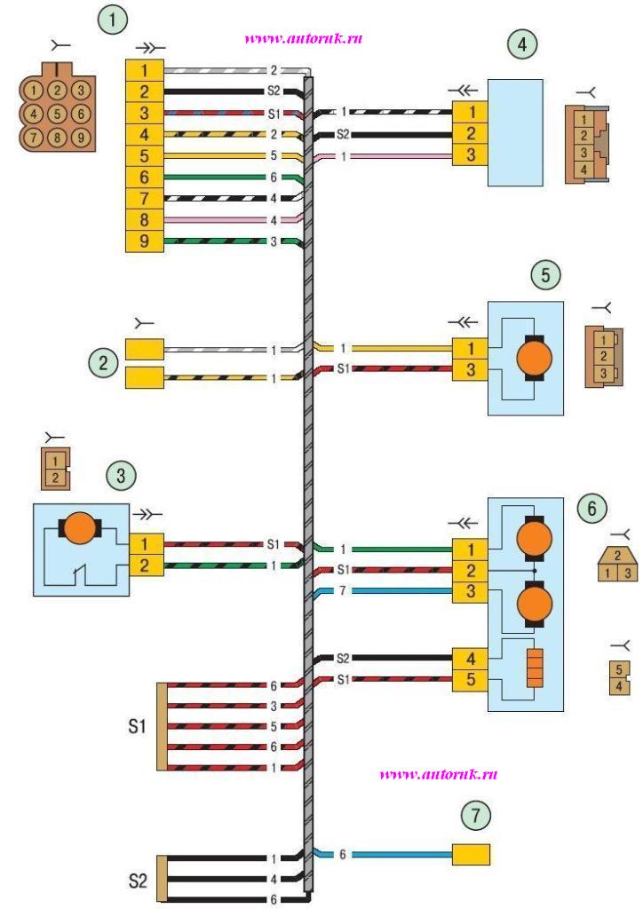 Схема проводки правой двери автомобиля Лада Приора