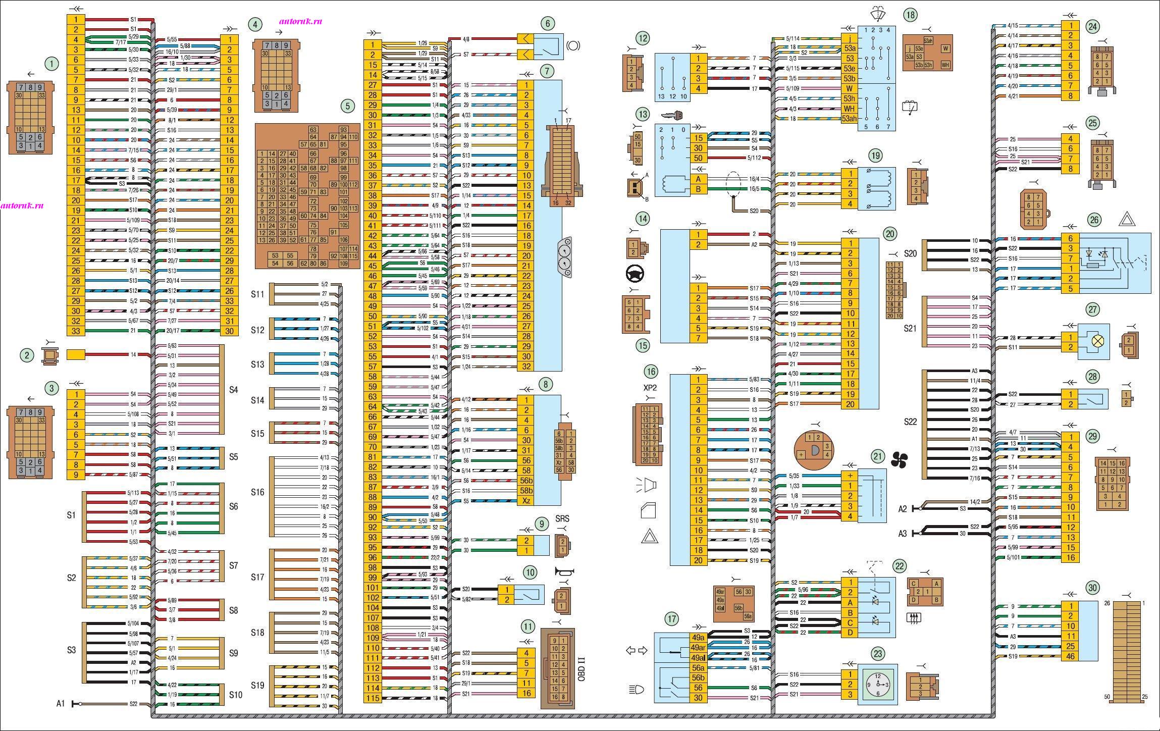 ВАЗ-2170 Lada Priora. Соединения жгута панели приборов: |