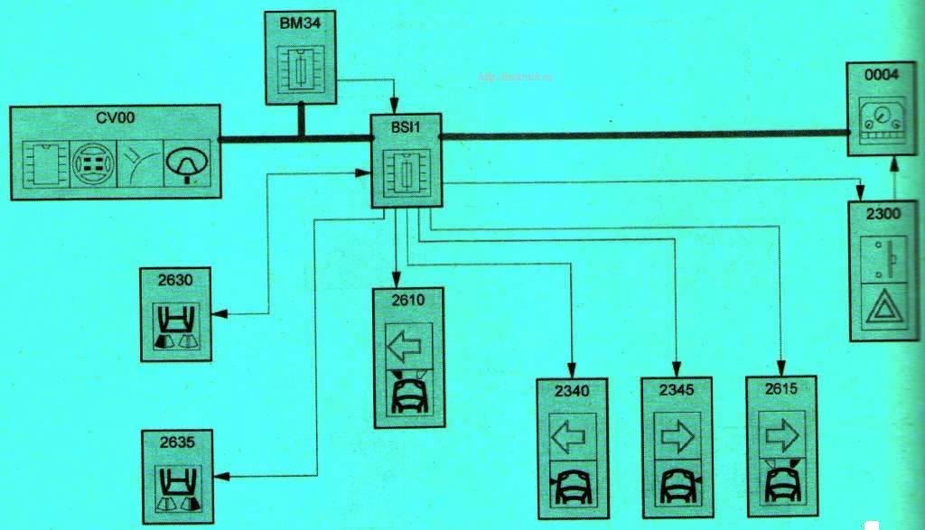 Схемы указателя поворота, аварийной сигнализации Peugeot 307