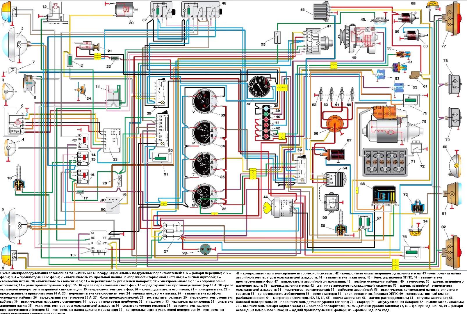 Схема электрооборудования автомобиля УАЗ–39095 без многофункциональных подрулевых переключателей