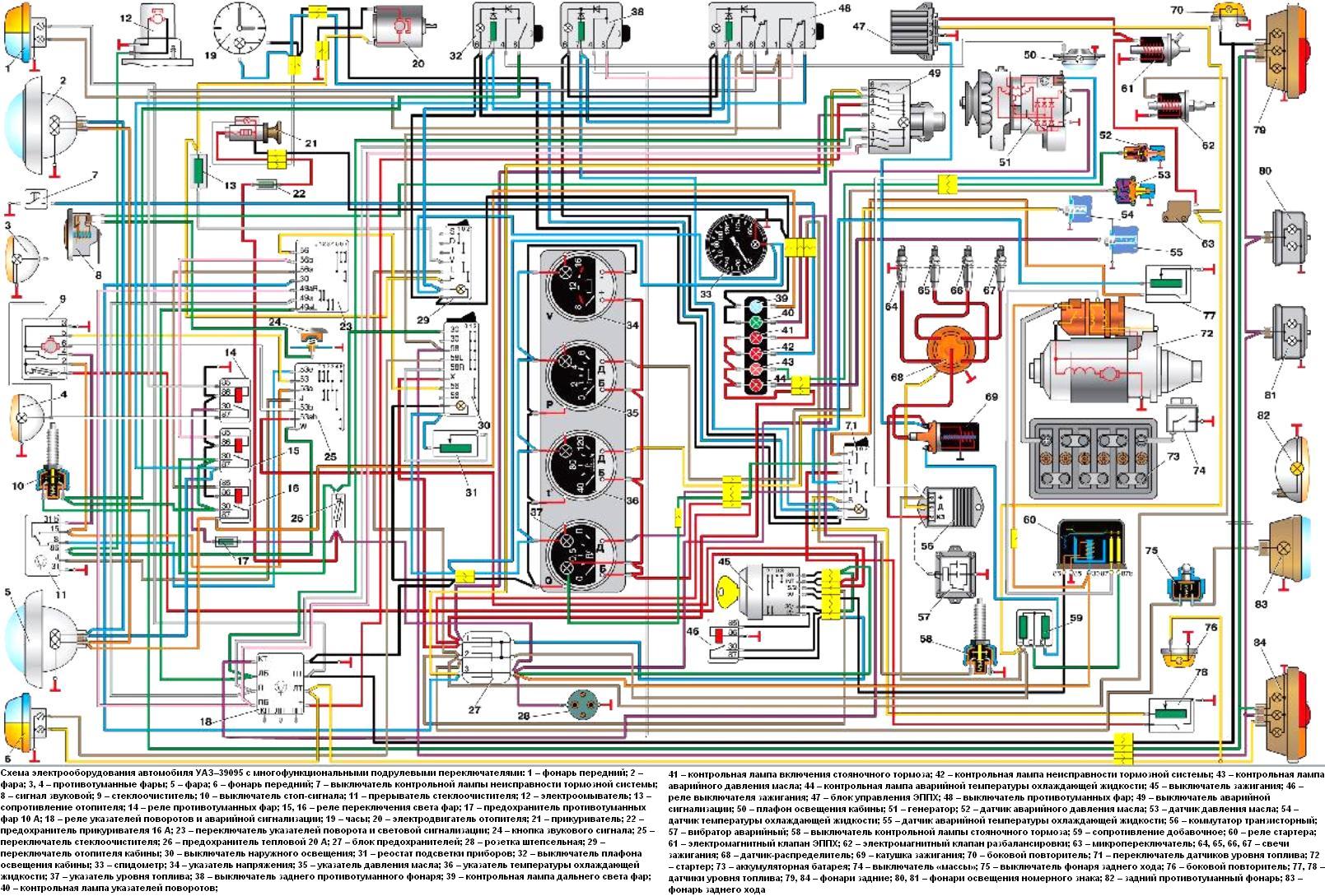 Схема электрооборудования автомобиля УАЗ–39095 с многофункциональными подрулевыми переключателями