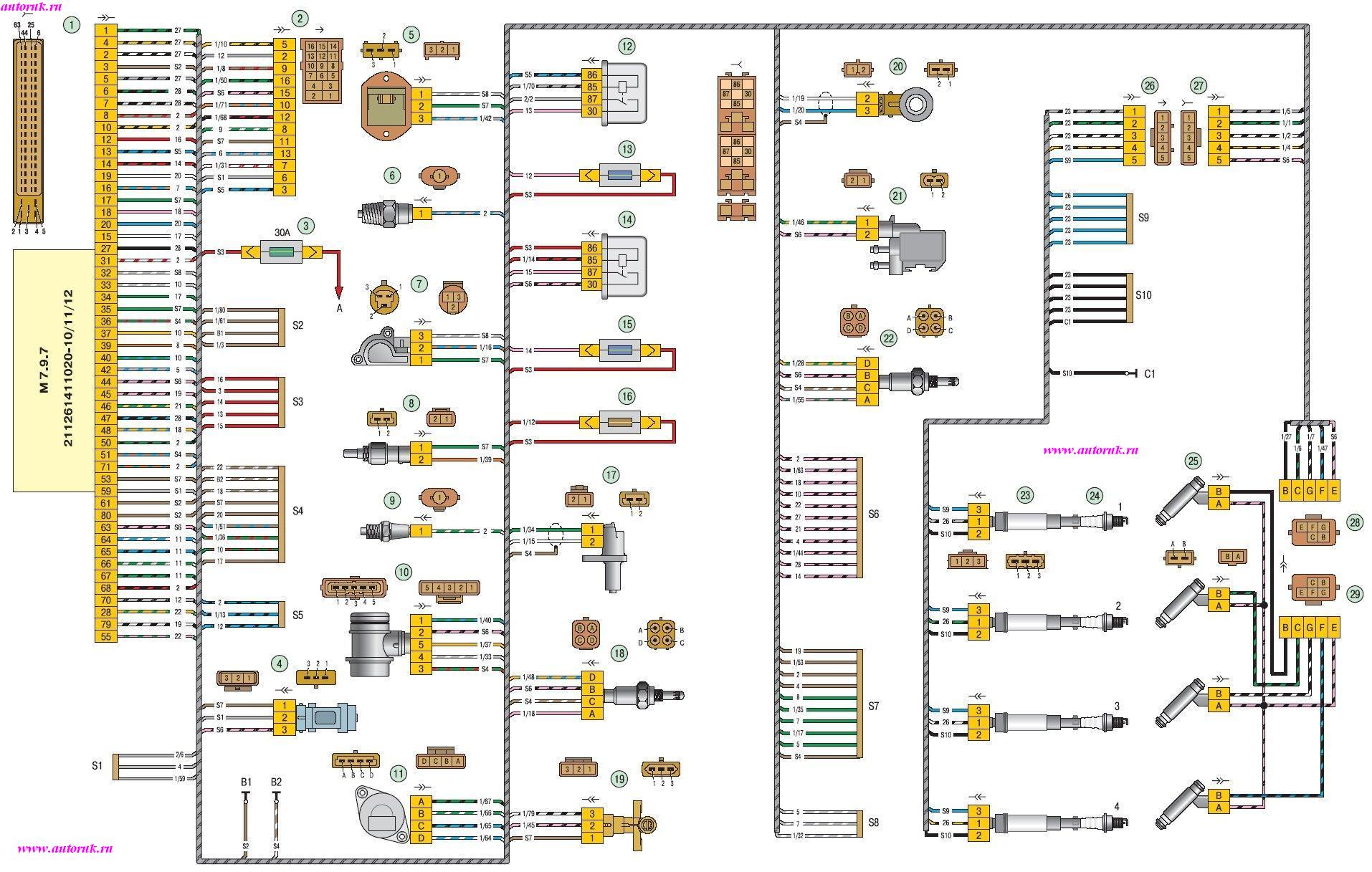 Соединения электронной системы управления двигателем Лада Приора