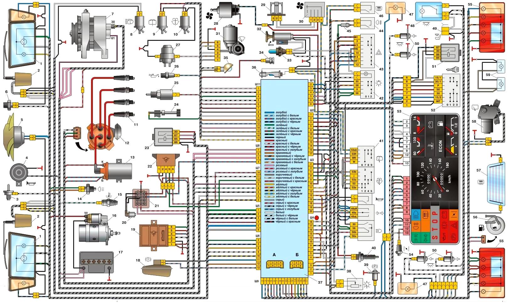 Электросхема жгутов проводов автомобиля ВАЗ-2109
