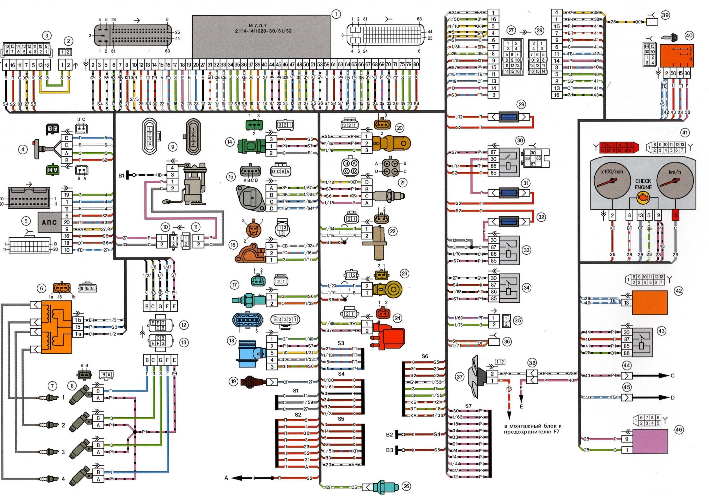 Схема электрической проводки автомобиля ВАЗ-21114