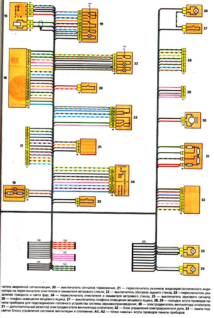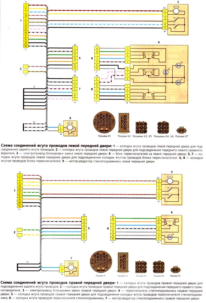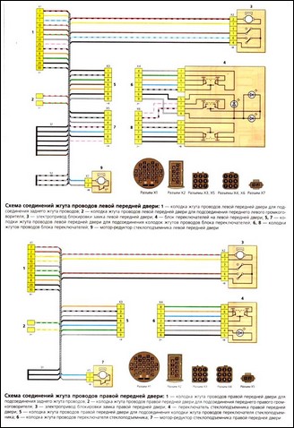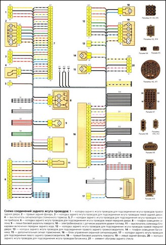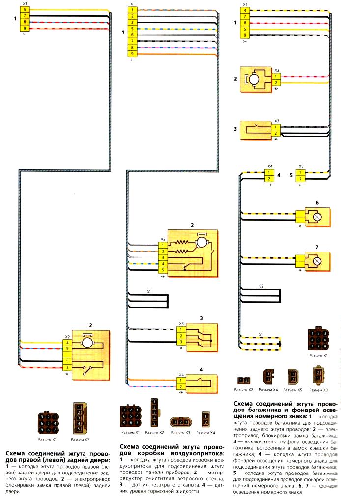 Схемы соединений жгутов проводов задних дверей, коробки воздухопритока, багажника, и фонарей освещения номерного знака