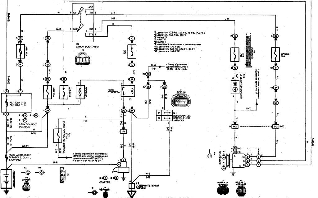 Схема системы запуска Tayota Avensis (модели выпуска с 07/2000 года)